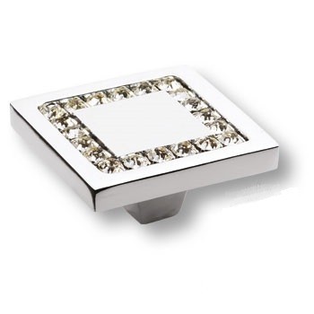Ручка кнопка 0771-005-3, материал Латунь, отделка Хром Кристаллы Swarovski, 50*50*24 мм